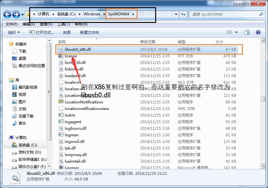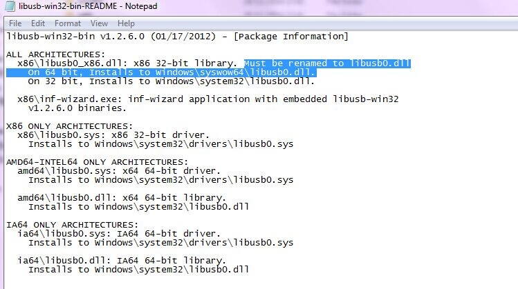 這段話的意思是說(shuō),如果系統(tǒng)是64的,你需要去x86 的文件夾,復(fù)制libusb0_x86.dll 去c:\Windows\syswow64\ (說(shuō)明:32位系統(tǒng),請(qǐng)將文件復(fù)制去Windows\system32\), 然后把復(fù)制過(guò)去的libusb0_x86.dll 的名稱換為libusb0.dll