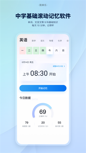 簡(jiǎn)單樂(lè)是一款記憶軟件,讓每個(gè)小伙伴在線輕松記憶知識(shí),每天在線學(xué)習(xí)單詞,還有文言文、公式等9個(gè)科目的基礎(chǔ)知識(shí)讓大家學(xué)習(xí),同步教材讓中高考復(fù)習(xí)同步,從小學(xué)到高中的知識(shí)全都有,打開手機(jī)就能學(xué)習(xí)、復(fù)習(xí),提高學(xué)習(xí)成績(jī)。