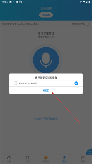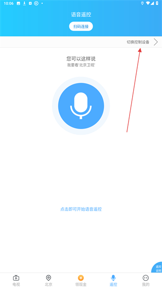 2、進入語言遙控的頁面內(nèi),點擊切換控制設(shè)備的按鈕。