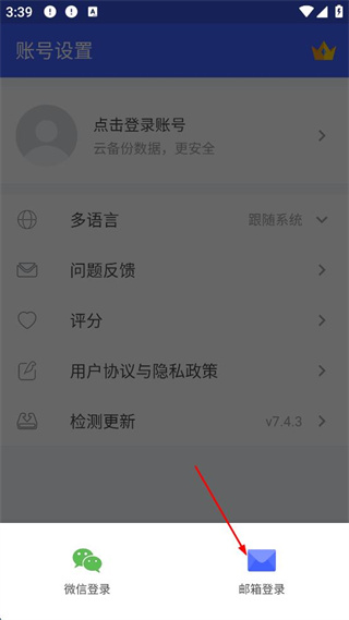 3、在登錄方式選擇界面點(diǎn)擊“郵箱登錄”。