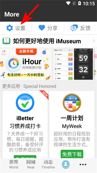 1、在imuseum應用界面,點擊設置選項,進入設置頁面。