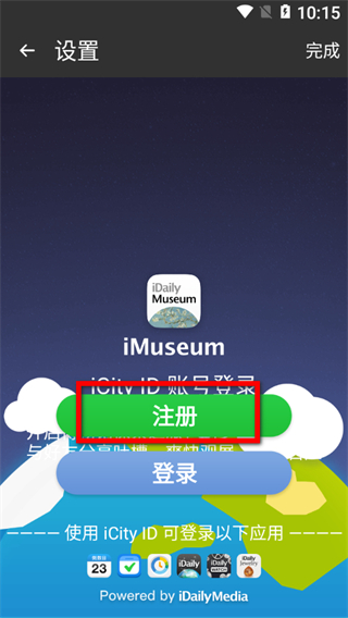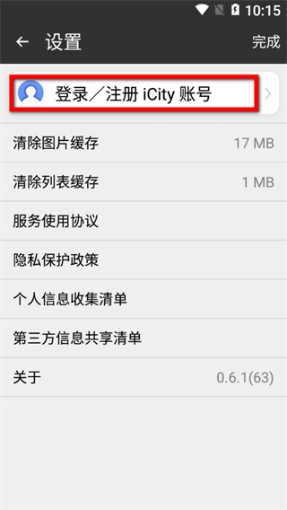 2、在設置頁面,點擊登錄/注冊iCity賬號選項,進入賬號注冊界面。