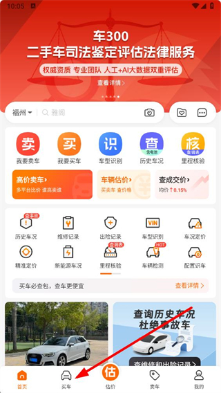 1、進(jìn)入app,點(diǎn)擊底部導(dǎo)航欄中的買(mǎi)車選項(xiàng)。