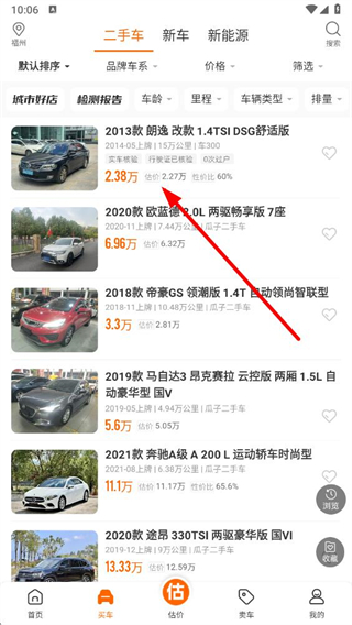 2、在買(mǎi)車的頁(yè)面,選擇自己感興趣的車輛。