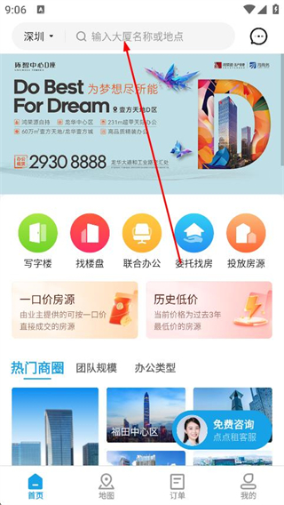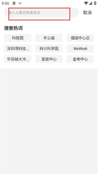 2、點(diǎn)擊搜索框并輸入目標(biāo)大廈名稱或具體地點(diǎn)。