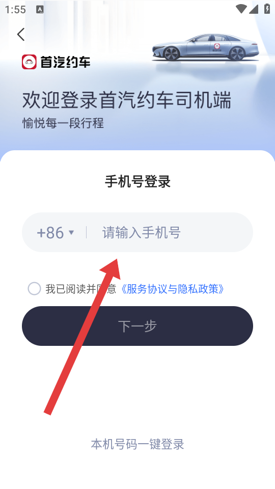 3、注冊(cè)完成后在手機(jī)號(hào)的登錄界面,需要點(diǎn)擊請(qǐng)輸入手機(jī)號(hào)輸入框,填寫(xiě)手機(jī)號(hào)碼,為登錄做準(zhǔn)備。