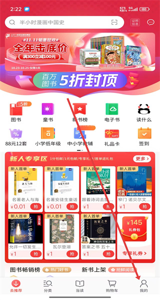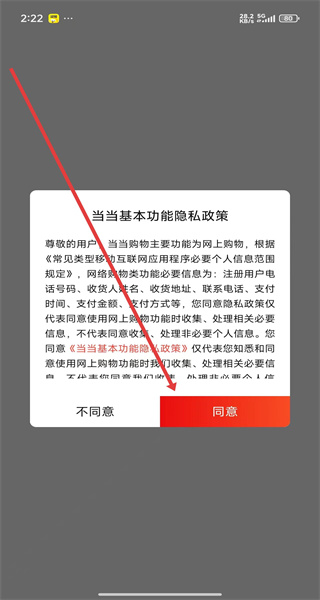 1、點擊“當當基本功能隱私政策”彈窗的“同意”,進入當當主界面。