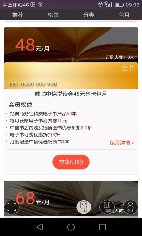 3.中信特供,會(huì)員專享,不一樣的尊貴享受:注冊(cè)即為普通會(huì)員,更可訂購(gòu)48/68/98高價(jià)值包月產(chǎn)品,享更多會(huì)員權(quán)益:購(gòu)書(shū)折扣、免費(fèi)閱讀、書(shū)券贈(zèng)送、特供書(shū)專遞……