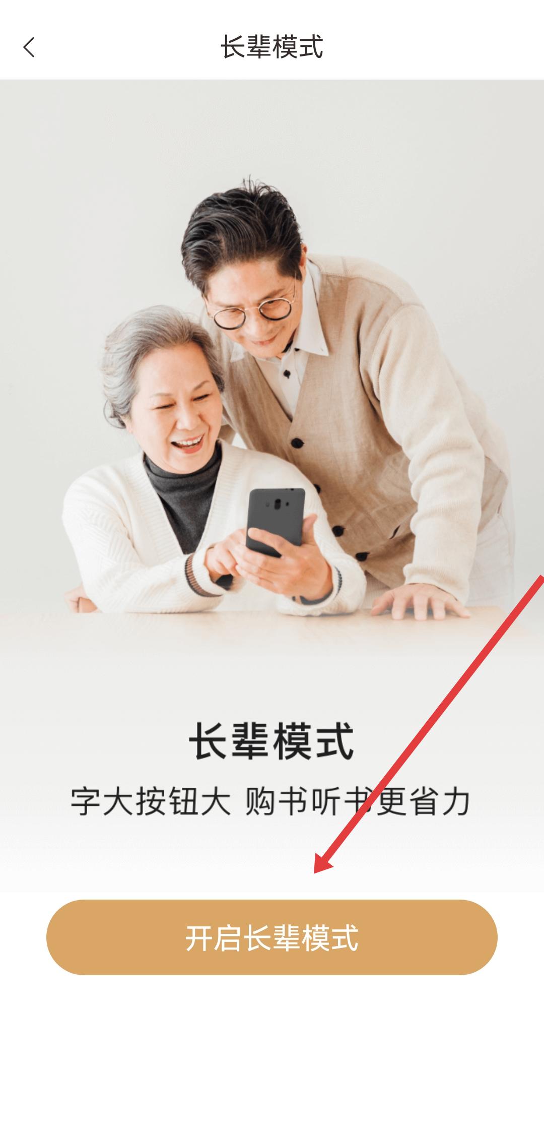 3、在長(zhǎng)輩模式設(shè)置頁(yè)面,點(diǎn)擊開(kāi)啟長(zhǎng)輩模式按鈕,即可開(kāi)啟長(zhǎng)輩模式,讓界面字體和按鈕更便于長(zhǎng)輩操作。