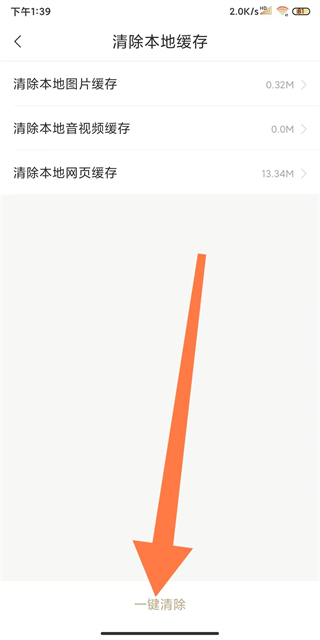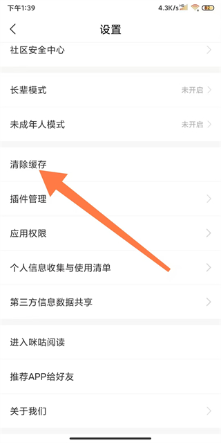 3、在設(shè)置頁(yè)面,點(diǎn)擊清除緩存選項(xiàng),進(jìn)入緩存清理界面。