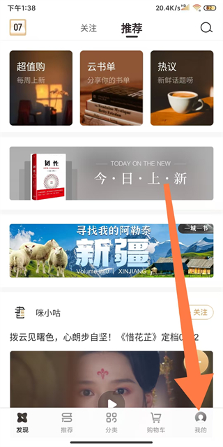 1、在咪咕云書(shū)店首頁(yè),點(diǎn)擊右下角我的選項(xiàng),進(jìn)入個(gè)人界面。
