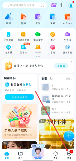 1、打開(kāi)中國(guó)移動(dòng)云盤(pán),點(diǎn)擊右下角我的。