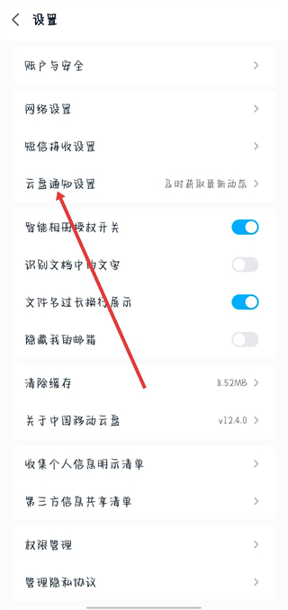 3、在設(shè)置頁(yè)面,點(diǎn)擊云盤(pán)通知設(shè)置選項(xiàng)。
