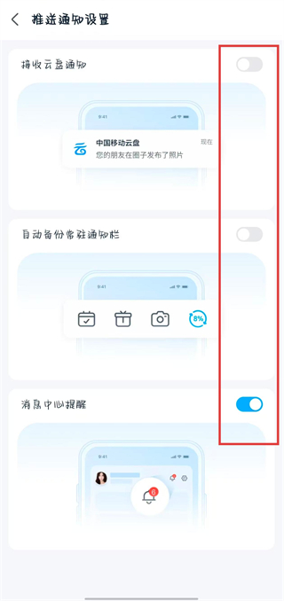 4、在推送通知設(shè)置頁(yè)面,可根據(jù)需求開(kāi)啟功能。