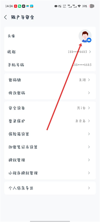 3、找到頭像區(qū)域旁的相機(jī)圖標(biāo),點(diǎn)擊該圖標(biāo)彈出更換頭像的操作選項(xiàng)。