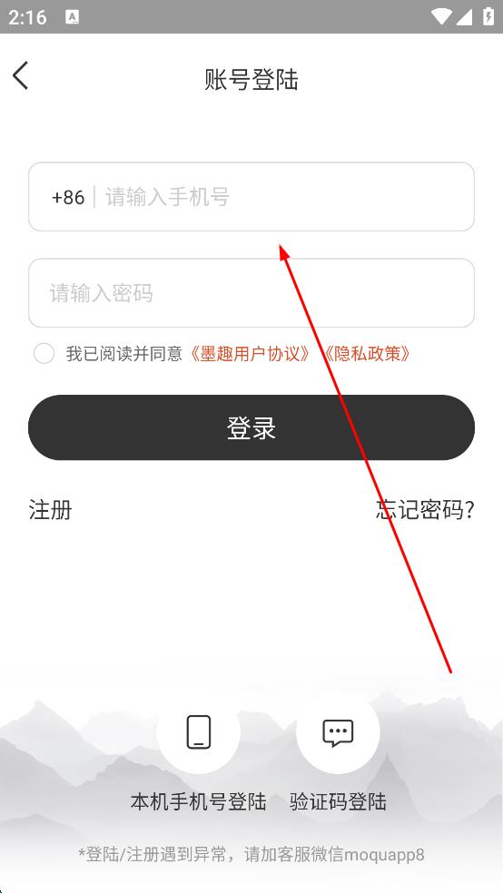 2、在登錄注冊(cè)頁面,點(diǎn)擊“手機(jī)登錄/注冊(cè)”,進(jìn)入到手機(jī)號(hào)輸入頁面。
