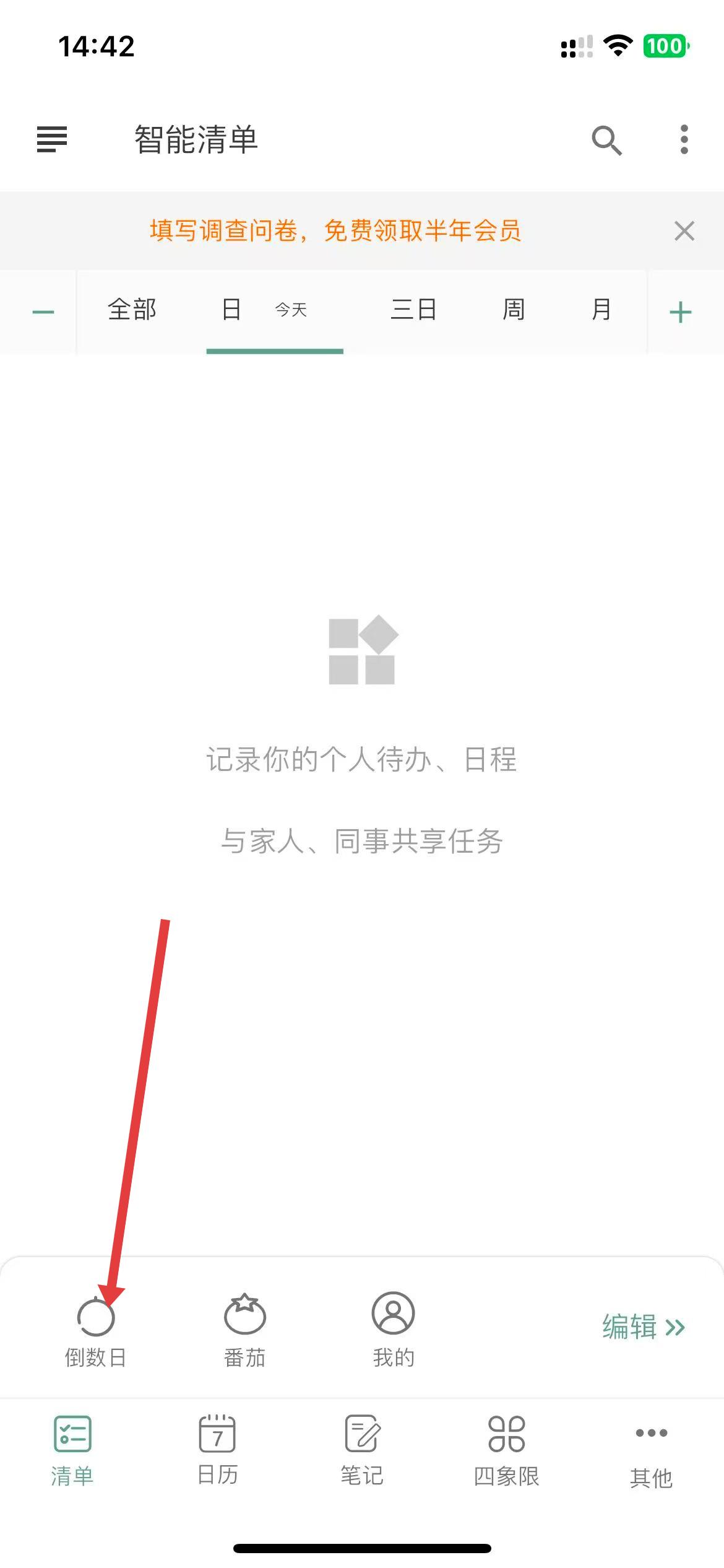 2、在彈出的菜單中,點(diǎn)擊倒數(shù)日選項(xiàng),進(jìn)入倒數(shù)日管理界面。
