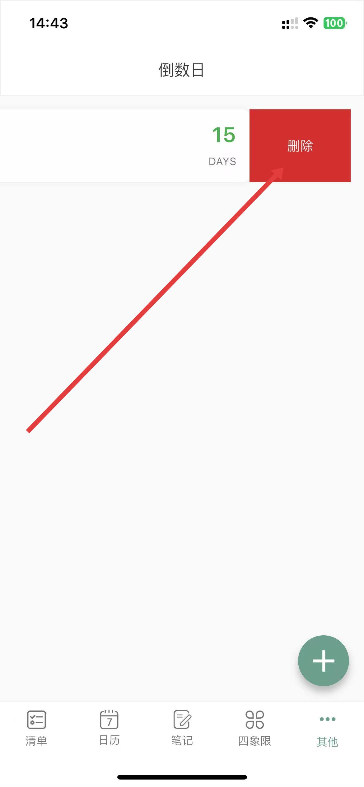 3、找到想要?jiǎng)h除的事件,向左滑動(dòng)該事件,會(huì)出現(xiàn)刪除按鈕,點(diǎn)擊它。