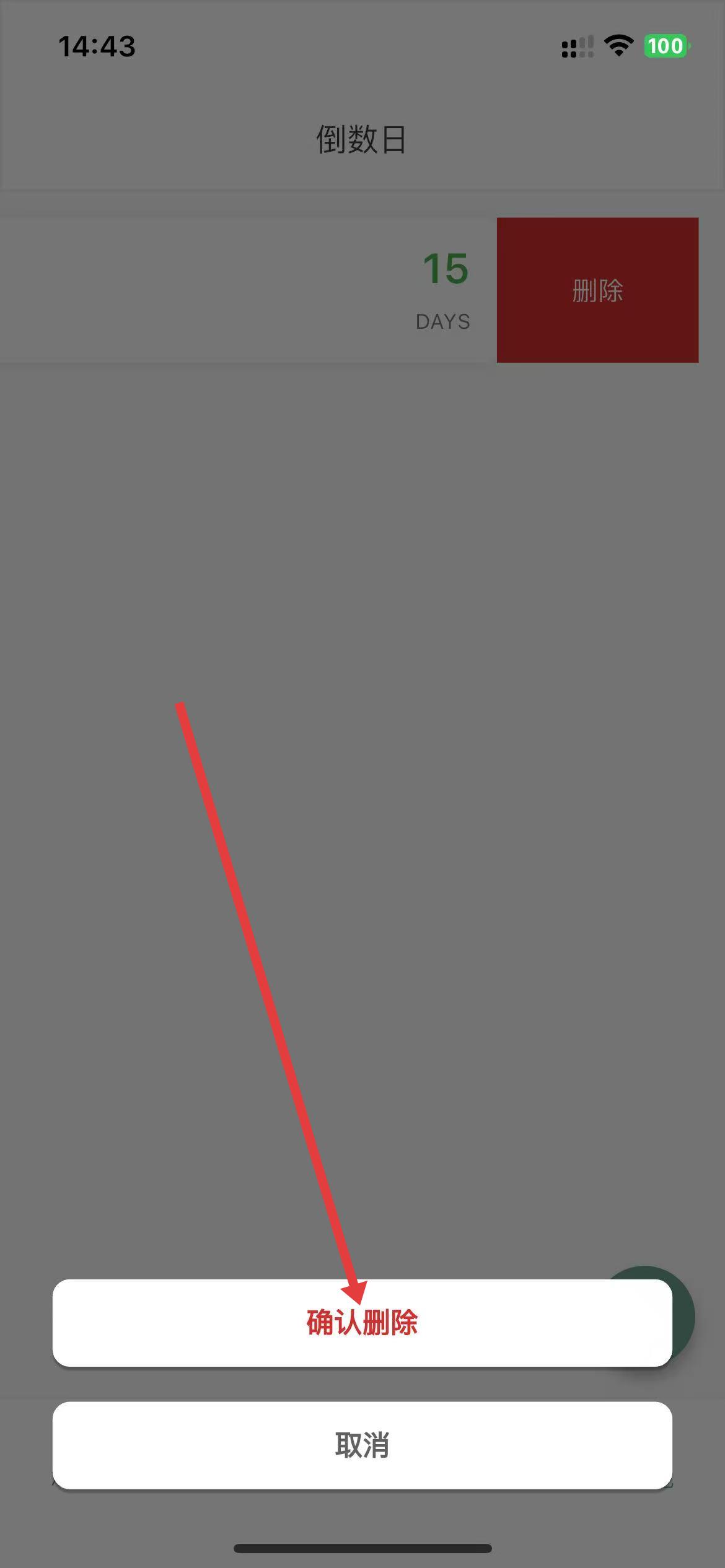 4、在彈出的確認(rèn)提示框中,點(diǎn)擊確認(rèn)刪除,即可成功刪除該倒數(shù)日事件。