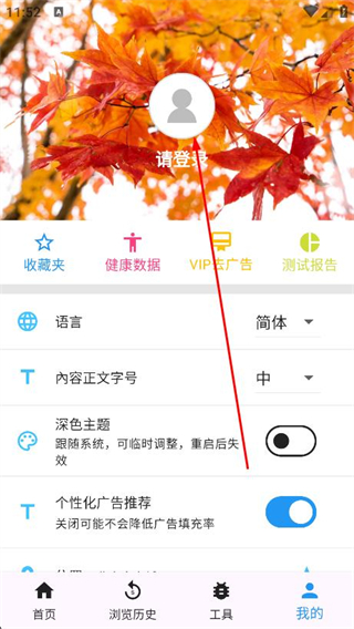 2、在我的頁(yè)面,點(diǎn)擊上方請(qǐng)登錄區(qū)域,進(jìn)入登錄頁(yè)面。