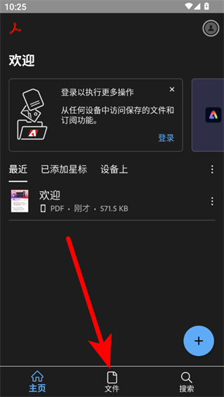 1、在Adobe Acrobat主頁,點(diǎn)擊下方文件選項(xiàng),進(jìn)入文件頁面。