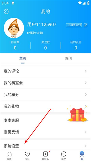 2、在我的頁面,找到并點擊下方的系統(tǒng)設(shè)置選項。