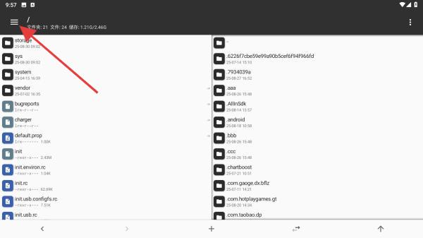 1、打開MT管理器App,點擊界面左上角的三橫線圖標,展開左側(cè)側(cè)邊欄。