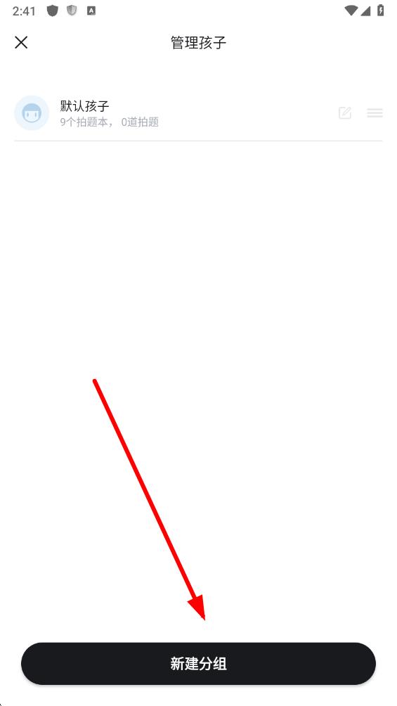3、在管理孩子界面里,點擊底部的新建分組按鈕。