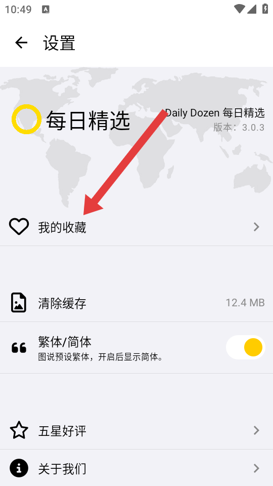3、進入設置的頁面后,點擊我的收藏選項,可查看已收藏的內容列表。