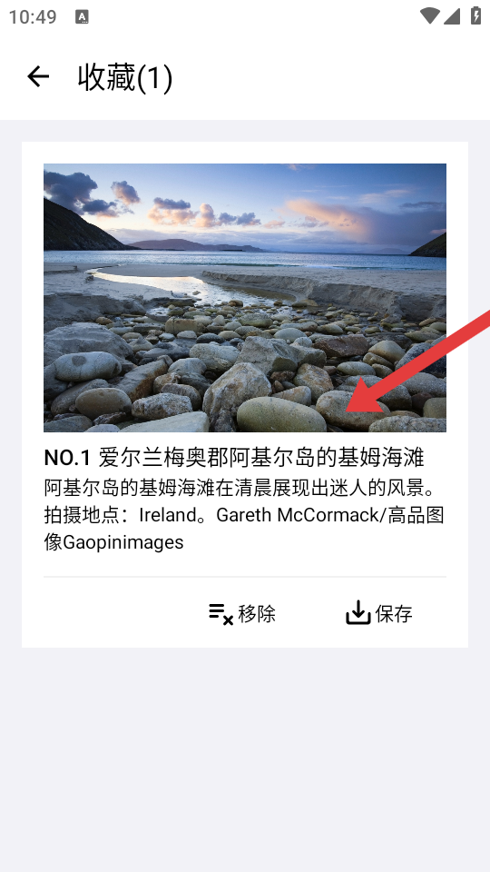 4、在收藏的頁面,可查看已收藏的內容,還能進行移除或保存來管理收藏內容。