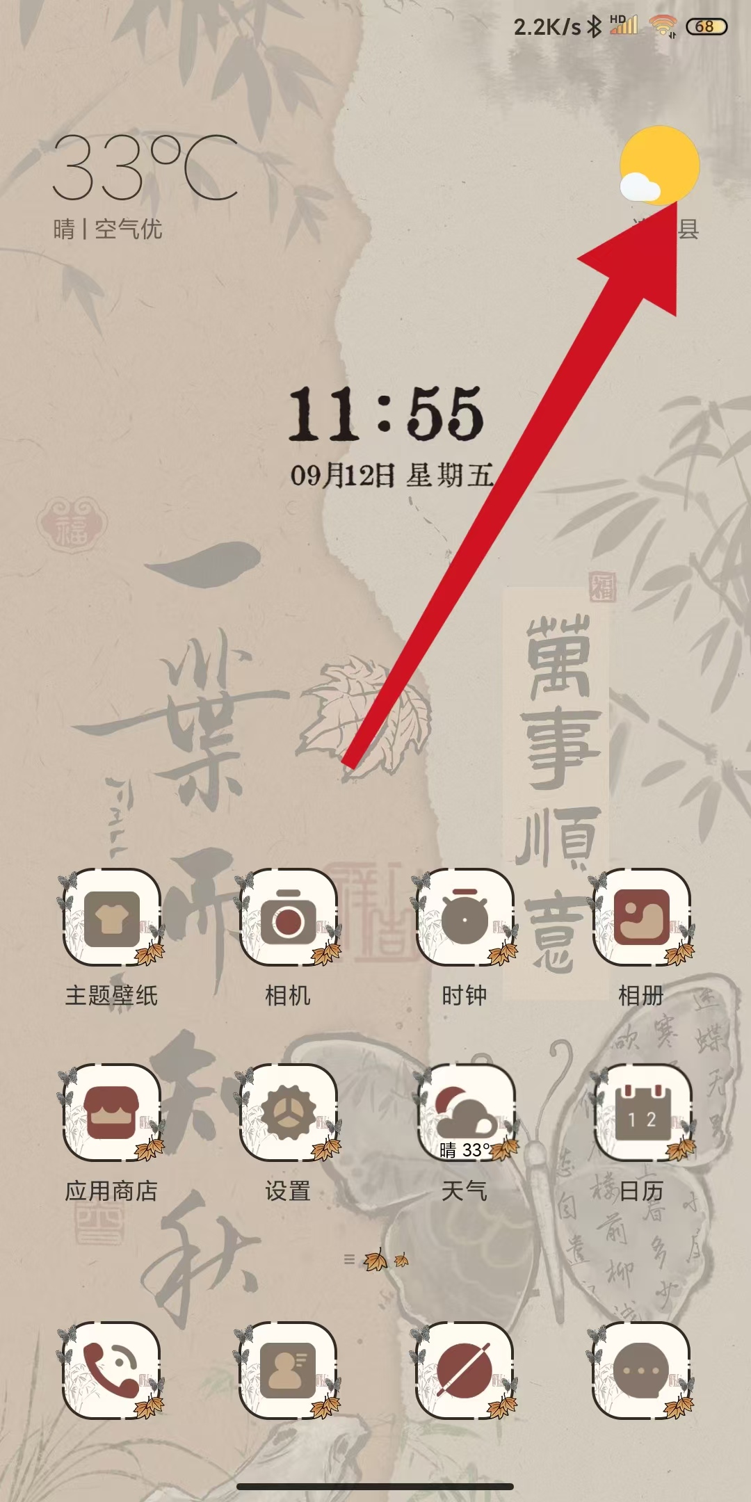 1、在手機主屏幕上找到,點擊天氣應(yīng)用圖標(biāo)進入天氣app主界面。