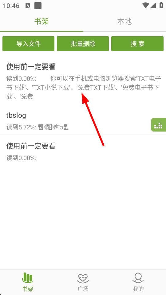 2、在書架頁面,點擊要閱讀的txt文檔,進入文檔閱讀界面。