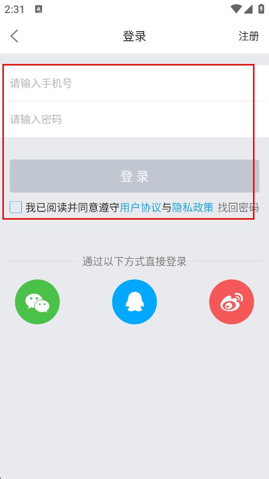 4、勾選“我已閱讀并同意遵守用戶協(xié)議與隱私政策”,點擊“登錄”按鈕,完成登錄操作。