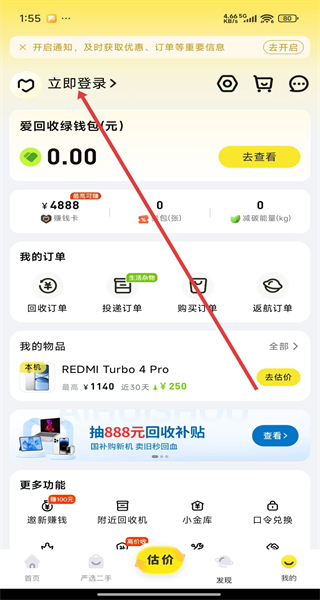 2、在進入到我的主頁中時,可以點擊上方立即登錄按鈕,進行登錄操作。