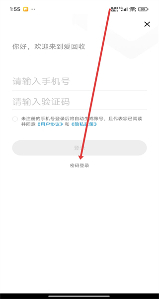 4、在切換到密碼登錄頁面中,點擊輸入框依次填寫手機號和密碼后,點擊登錄按鈕即可。