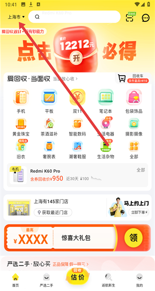 2、在進入到首頁中時,可以點擊左上角城市選項,進入修改城市定位。