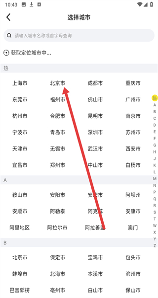 4、在開啟位置權(quán)限后,可以通過點擊方式選擇要定位的城市。