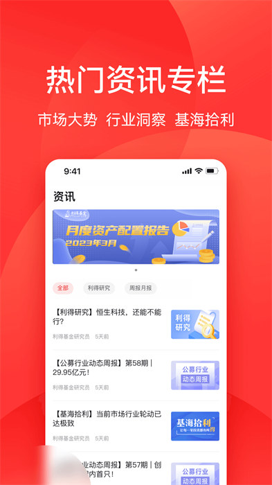 利得基金是一款安全、免費的手機端親民理財軟件,可為用戶提供資產(chǎn)保值增值的多元化選擇,門檻低,保本增值,致力于為大眾提供隨時提升、收益較高的理財服務。利得基金致力向投資者提供權(quán)威、專業(yè)、及時、全面的理財服務,涵蓋基金交易、金融資訊、理財行業(yè)動態(tài)、基金數(shù)據(jù)、基金評級、投資理財分析等內(nèi)容。