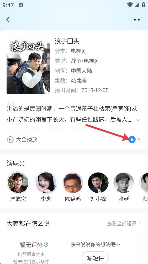 3、在電視劇詳情頁(yè)面,點(diǎn)擊大全播放右側(cè)的播放按鈕,開(kāi)始播放電視劇。