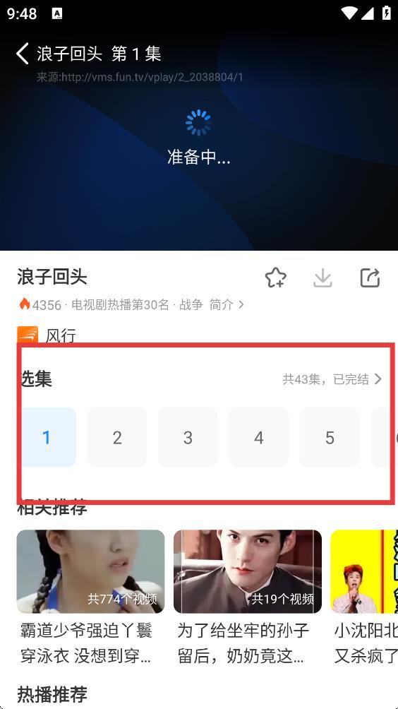 4、進(jìn)入播放界面后,若想觀看其他集數(shù),點(diǎn)擊選集區(qū)域,即可觀看電視劇。