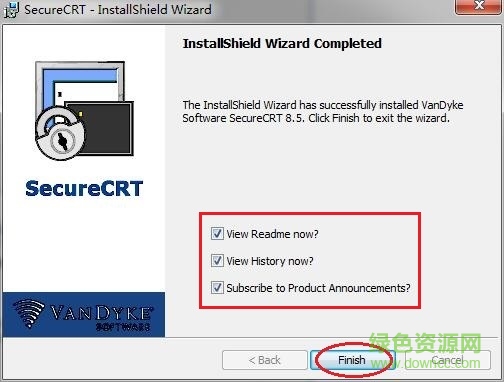 5.到這里就安裝完成了,點(diǎn)擊“Finish”結(jié)束(暫時(shí)不用運(yùn)行securecrt,關(guān)系到后面的修改,切記)