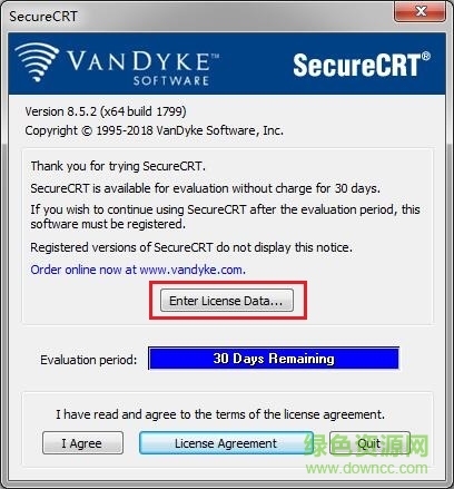5.然后運(yùn)行SecureCRT,會(huì)提示要注冊(cè),點(diǎn)“ok”,接著選“Enter license Data”