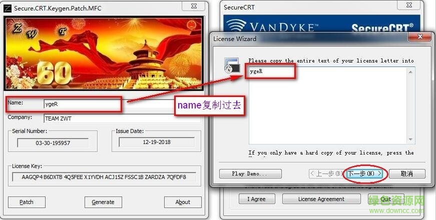 6.將注冊(cè)機(jī)中“name”信息復(fù)制到軟件界面中(如圖),然后點(diǎn)“下一步”