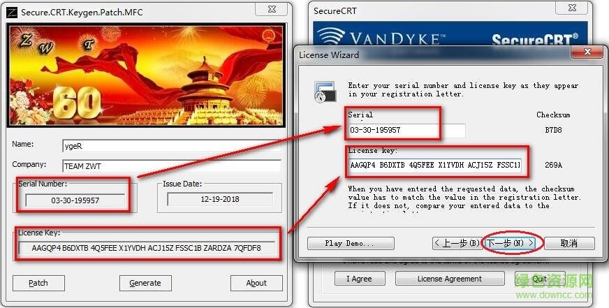 9.再將注冊(cè)機(jī)中的Serialmumber和License key復(fù)制到軟件對(duì)應(yīng)框中去,繼續(xù)“下一步”