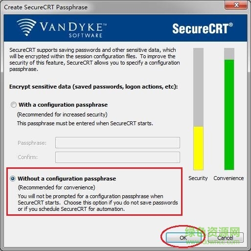 11.勾選“without a configuration passphrase”,點(diǎn)擊“ok”就可以了