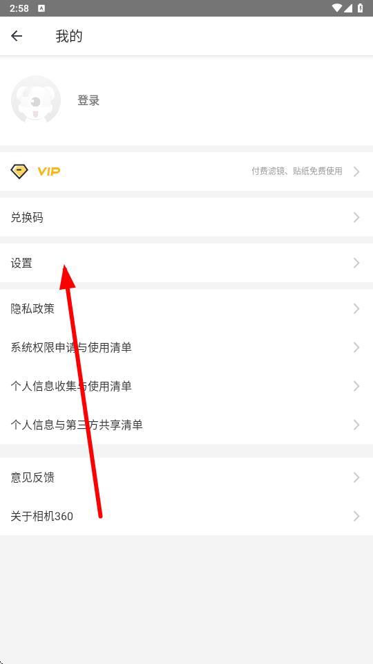 1、打開相機(jī)360應(yīng)用后,先點(diǎn)擊界面底部或側(cè)邊等位置找到并進(jìn)入我的個(gè)人中心頁(yè)面,在該頁(yè)面中,找到列表里的設(shè)置選項(xiàng)并點(diǎn)擊,以此進(jìn)入設(shè)置功能界面。