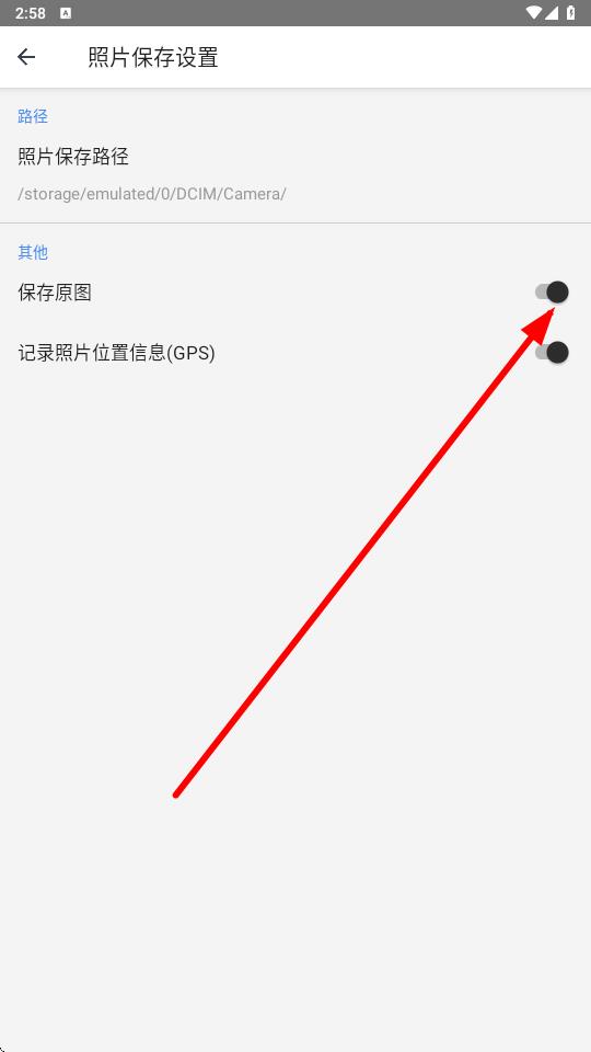 3、在照片保存設(shè)置頁(yè)面中,查找記錄照片位置信息GPS相關(guān)選項(xiàng),將對(duì)應(yīng)開關(guān)點(diǎn)擊開啟,這樣就成功打開地址照片位置信息設(shè)置,后續(xù)拍照就能記錄位置信息啦。