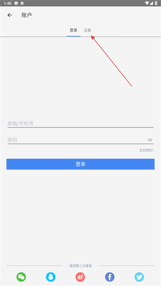 3、進(jìn)入登錄的頁(yè)面內(nèi),點(diǎn)擊登錄右側(cè)注冊(cè)的按鈕。