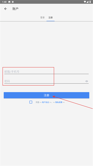 4、輸入手機(jī)號(hào)、密碼后,再點(diǎn)擊注冊(cè)的按鈕即可完成。