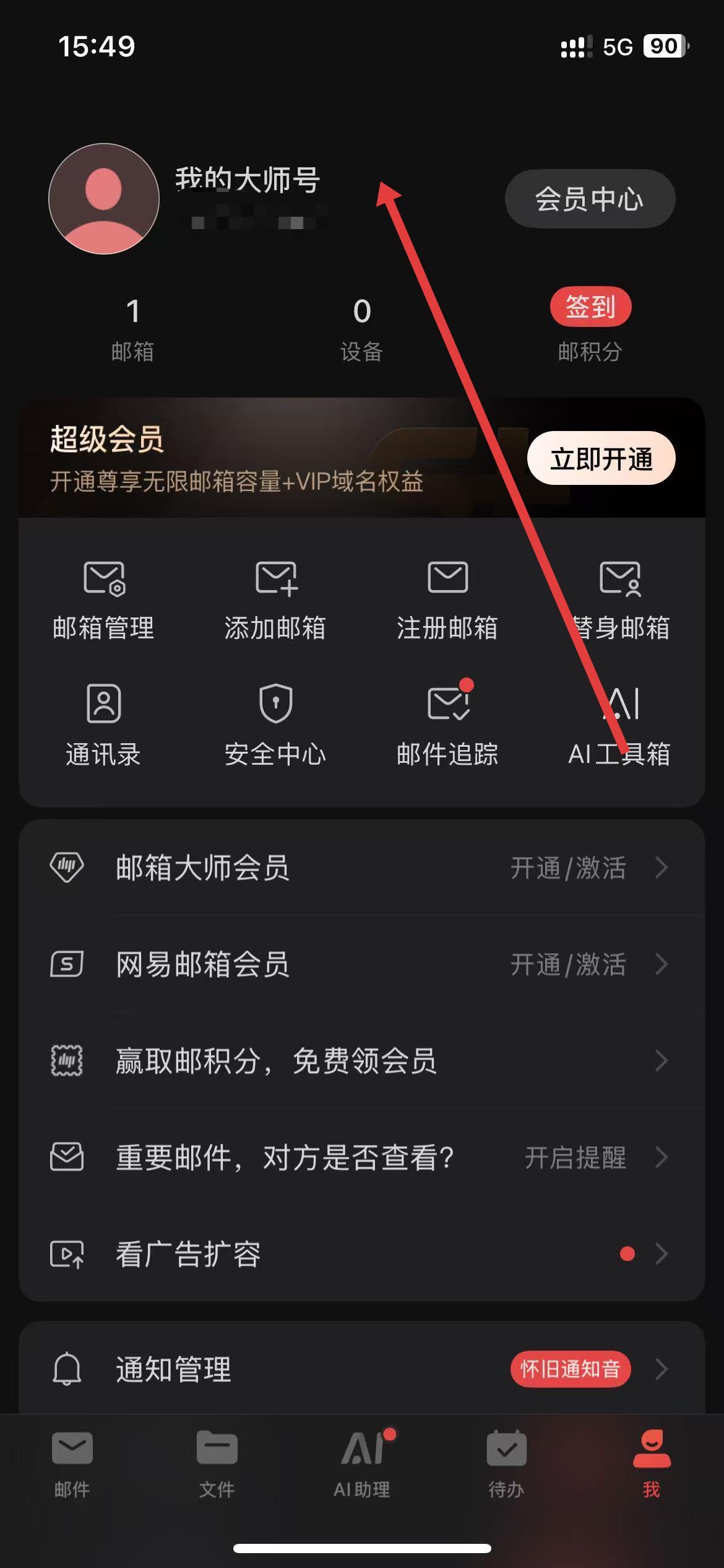 2、在個人頁面,點擊頭像右側(cè),我的大師號。